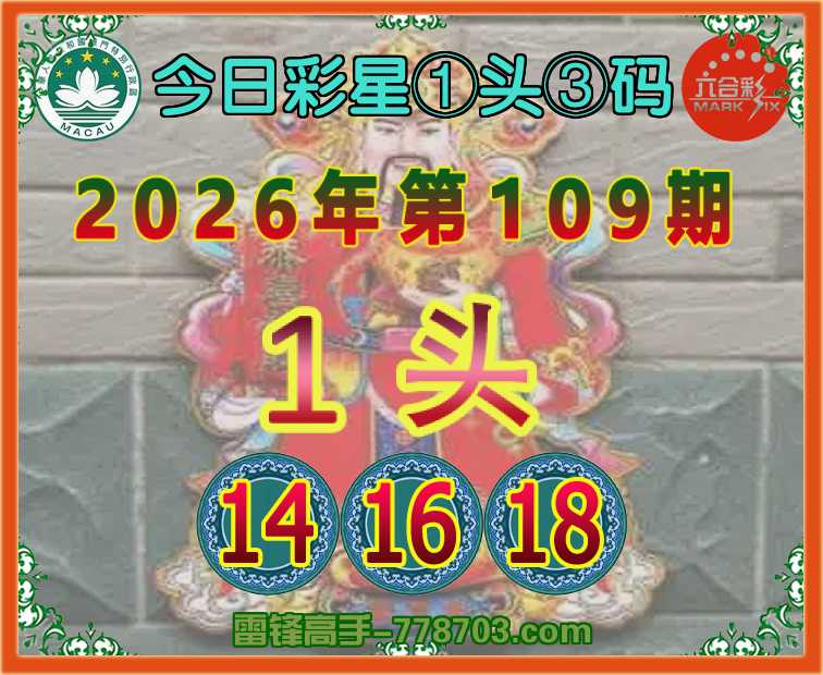 109期:《今日彩星》 ①头③码1头主:14.16.18】开:兔16