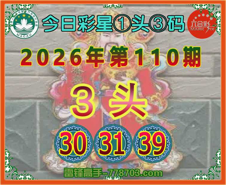 110期:《今日彩星》 ①头③码3头主:30.31.39】开:牛30